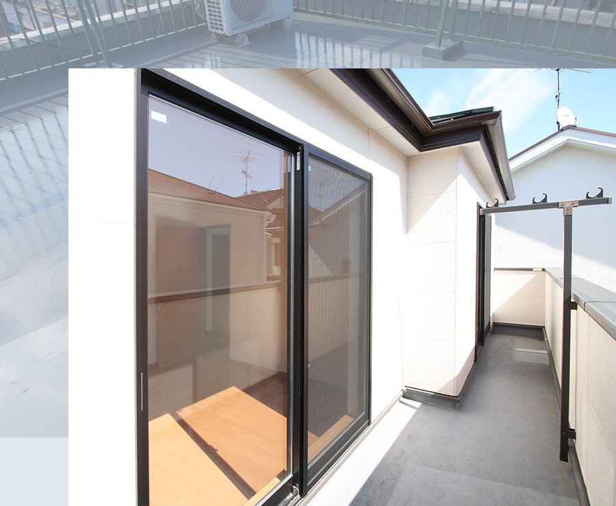 屋上やベランダなど、雨水が溜まりやすい箇所に施す防水・シール工事。防水層を形成することで、水分による劣化を防ぎます。